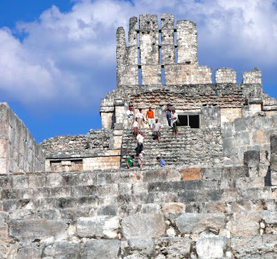 | Tourists explore ancient Maya ruins of Edzna (Photo by Bob Schulman) |